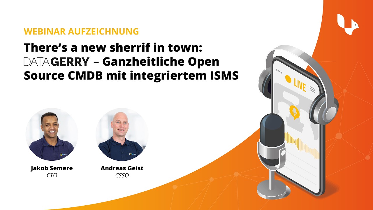 Gute Nachrichten für alle, die unser Webinar verpasst haben oder Inhalte noch einmal vertiefen möchten! Die Aufzeichnung unseres Webinars „There’s a new sheriff in town: DataGerry – Ganzheitliche Open Source CMDB mit integriertem ISMS“ ist ab sofort verfügbar!